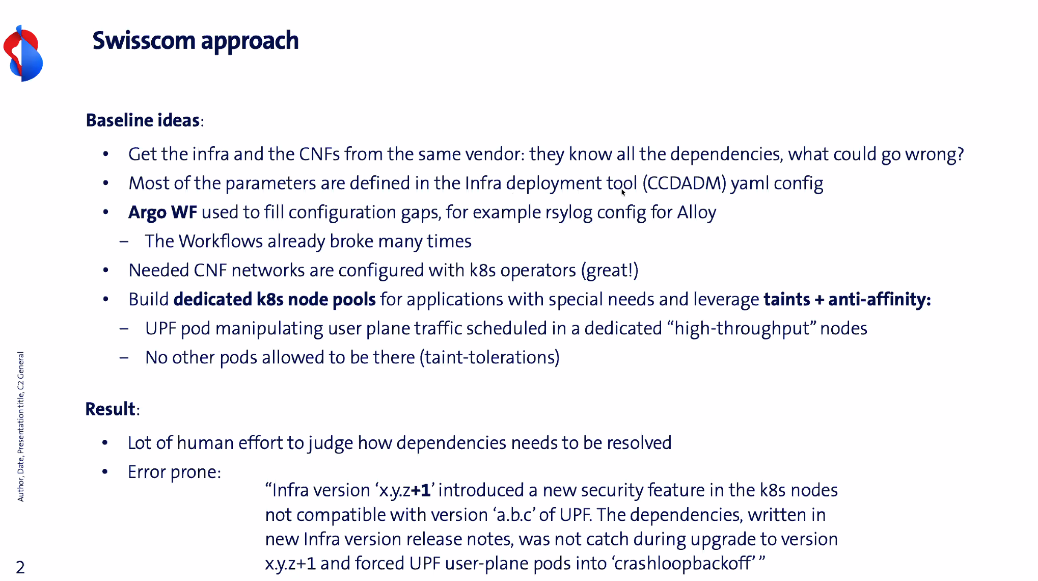- Feedback on the management of CNF dependencies versus the infrastructure